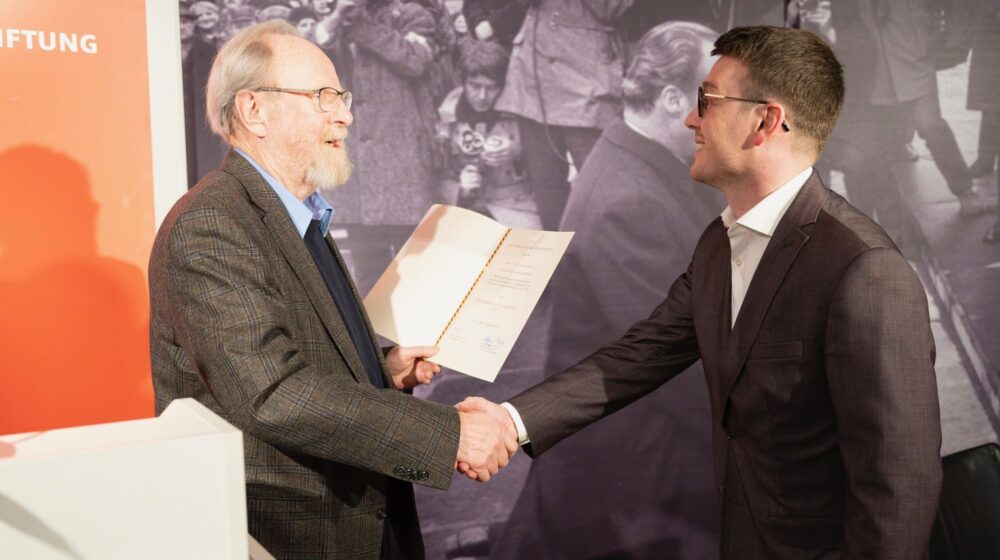 Home / Current News / News / Verleihung des Willy-Brandt-Preises für Zeitgeschichte an Joey Rauschenberger Verleihung des Willy-Brandt-Preises für Zeitgeschichte an Joey Rauschenberger Preisverleihung am 20. Januar im Forum Willy Brandt Berlin Forum Icon Forum Berlin published: 21. January 2026 Im Forum Willy Brandt Berlin wurde am 20. Januar der Willy-Brandt-Preis für Zeitgeschichte 2025 an den Historiker Joey Rauschenberger verliehen. Mit dem Preis zeichnet die Bundeskanzler-Willy-Brandt-Stiftung alle zwei Jahre eine herausragende wissenschaftliche Arbeit aus. Gewürdigt werden Studien, die sich der deutschen Geschichte des 20. Jahrhunderts in ihren europäischen und globalen Bezügen widmen und so ein Thema innovativ erforschen, das in Verbindung mit dem politischen Wirken Willy Brandts steht. Bundestagspräsident a. D. Wolfgang Thierse begrüßte als Kuratoriumsvorsitzender der Stiftung die geladenen Gäste. Anschließend verlas er die Preisbegründung und überreichte die Auszeichnung an Joey Rauschenberger. Der Historiker erhält den Willy-Brandt-Preis für Zeitgeschichte für seine Dissertation „Wiedergutmachung für Sinti und Roma. Eine Praxisgeschichte der Entschädigung von NS-Unrecht in Baden-Württemberg 1945–1980“, die voraussichtlich im Sommer 2026 in der Schriftenreihe der Vierteljahrshefte für Zeitgeschichte im Verlag De Gruyter Oldenbourg erscheint. In seiner anschließenden Laudatio würdigte Constantin Goschler, Professor für Zeitgeschichte an der Ruhr-Universität Bochum, die Arbeit des Preisträgers als bedeutende Forschungsleistung. Er präsentierte dem Publikum die zentralen Erkenntnisse der Dissertation und beleuchtete dabei die Entschädigungspraxis, das Verwaltungshandeln und die Erfahrungen von Sinti und Roma in der bundesrepublikanischen Nachkriegsgeschichte. Danach folgte eine von Kristina Meyer moderierte Diskussion mit dem Preisträger und dem Laudator. Zum Abschluss konnten die Gäste den Abend bei einem kleinen Empfang und anregenden Gesprächen ausklingen lassen. More news